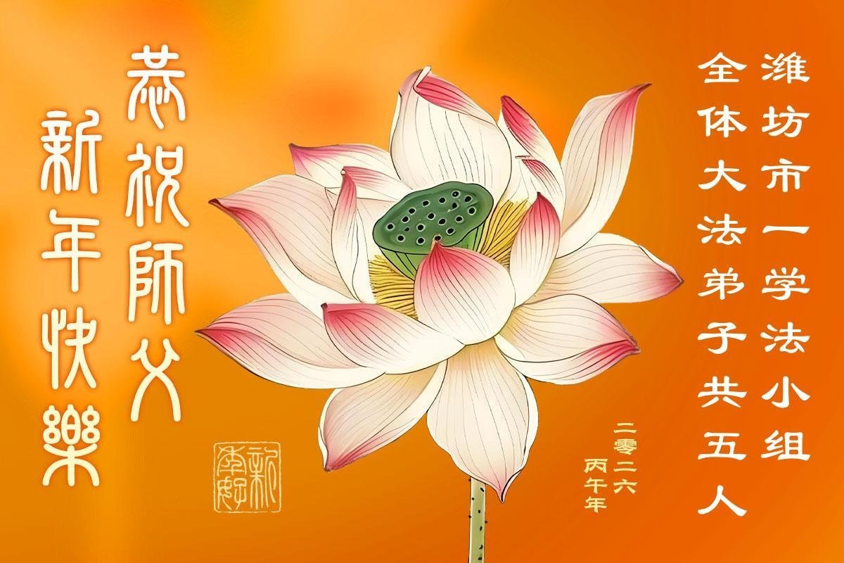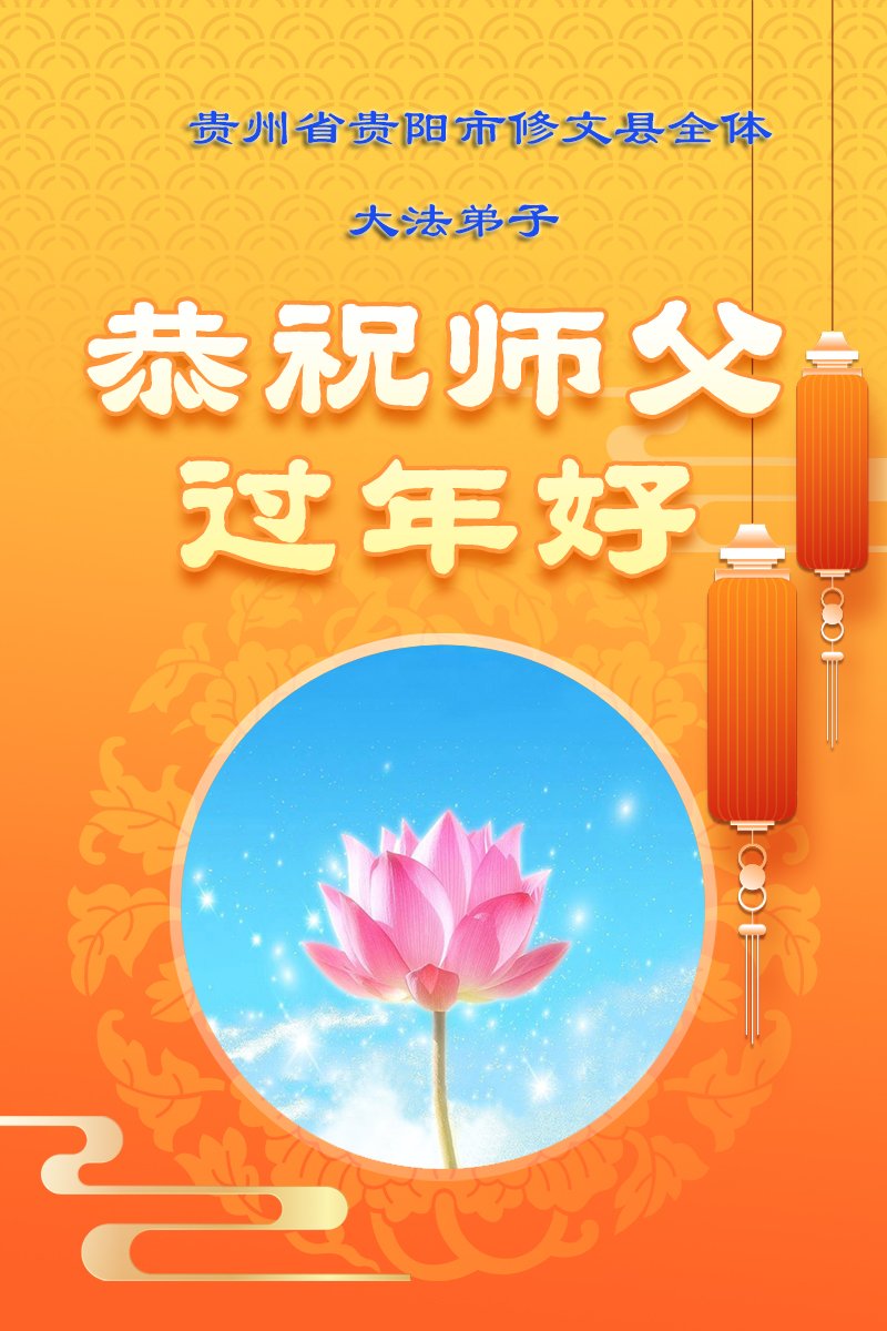 慈悲伟大的师父好!师父您辛苦了!我们学法小组的全体同修心怀无限的感恩给慈悲伟大的师父拜年!遥祝师父新年好!谢谢师父对弟子的加持与看护!时间过得很快,稍纵即逝。我们会珍惜每一次的集体学法时间,静心学法、学法入心。我们也会珍惜同修间的这份圣缘,彼此互相鼓励、互相帮助。每当同修间有了问题时、有了矛盾时能首先想到自己是修炼人,能向内修自己的人心,能用大法要求自己。在每个人都提高自己心性的同时,我们的整体也得到了提高。正法接近尾声,弟子们不忘救人的使命,勇猛精進,兑现誓约。不让自己的天国众生失望,不给自己的修炼留下遗憾。