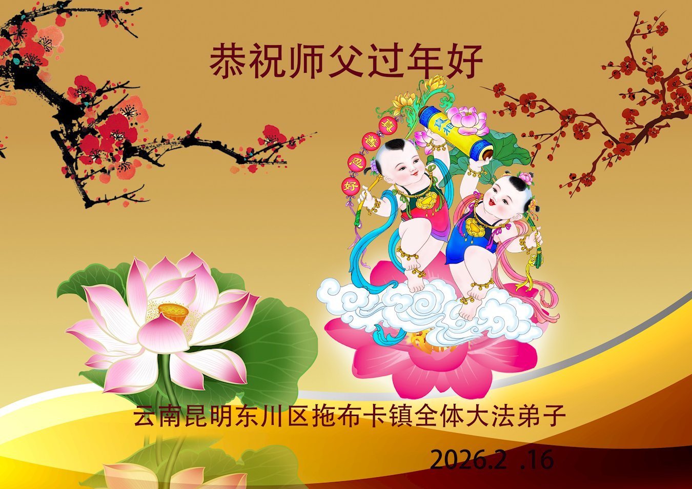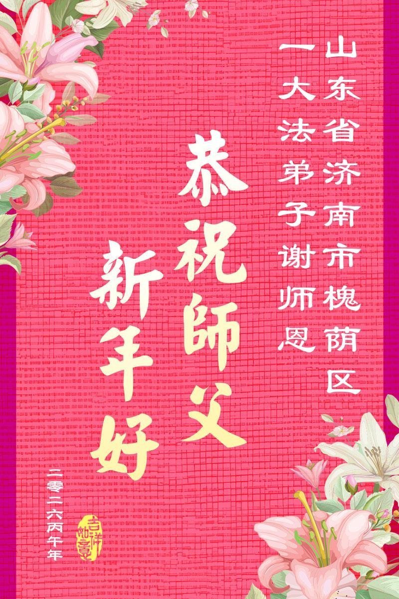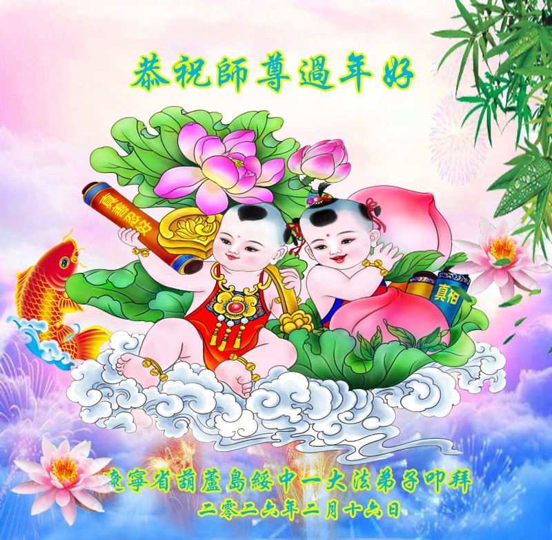 恭祝师父过年快乐!感恩师父慈悲苦度,谢谢师父!师父您辛苦了!能做您的弟子是我们的幸运,荣耀,神圣。我们珍惜这万古机缘。走师父安排的路。让我们与更多的众生迎接那仙乐响起,金莲盛开大法春天的到来。随师回家。