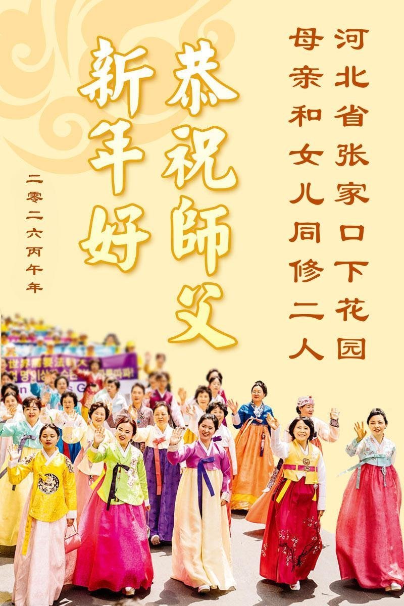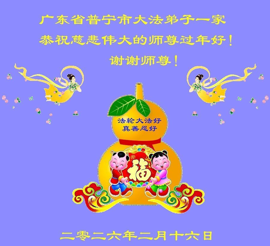 今天是腊月初一,快过大年了,我们姊妹俩在此给尊敬的师父拜年!感恩师父的慈悲普度,恭祝师父新年好!在新的一年里,我们会听师父的话,抓紧时间修好自己多救人。让更多的众生明白:法轮大法好,真善忍好!
