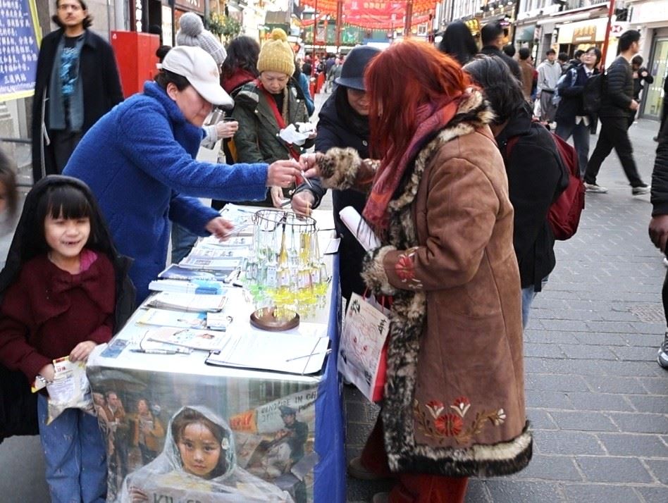 【明慧网二零二六年二月二十七日】二零二六年二月二十二日星期天是中国新年初六,一元复始,万象更新,阳光明媚、温暖如春。英国华人社团在伦敦市中心举行庆祝活动,当地法轮功学员象往常一样开展弘法活动。许多当地居民和游客在了解真相后,表达了对中共迫害法轮功的谴责以及对真、善、忍理念的喜爱。